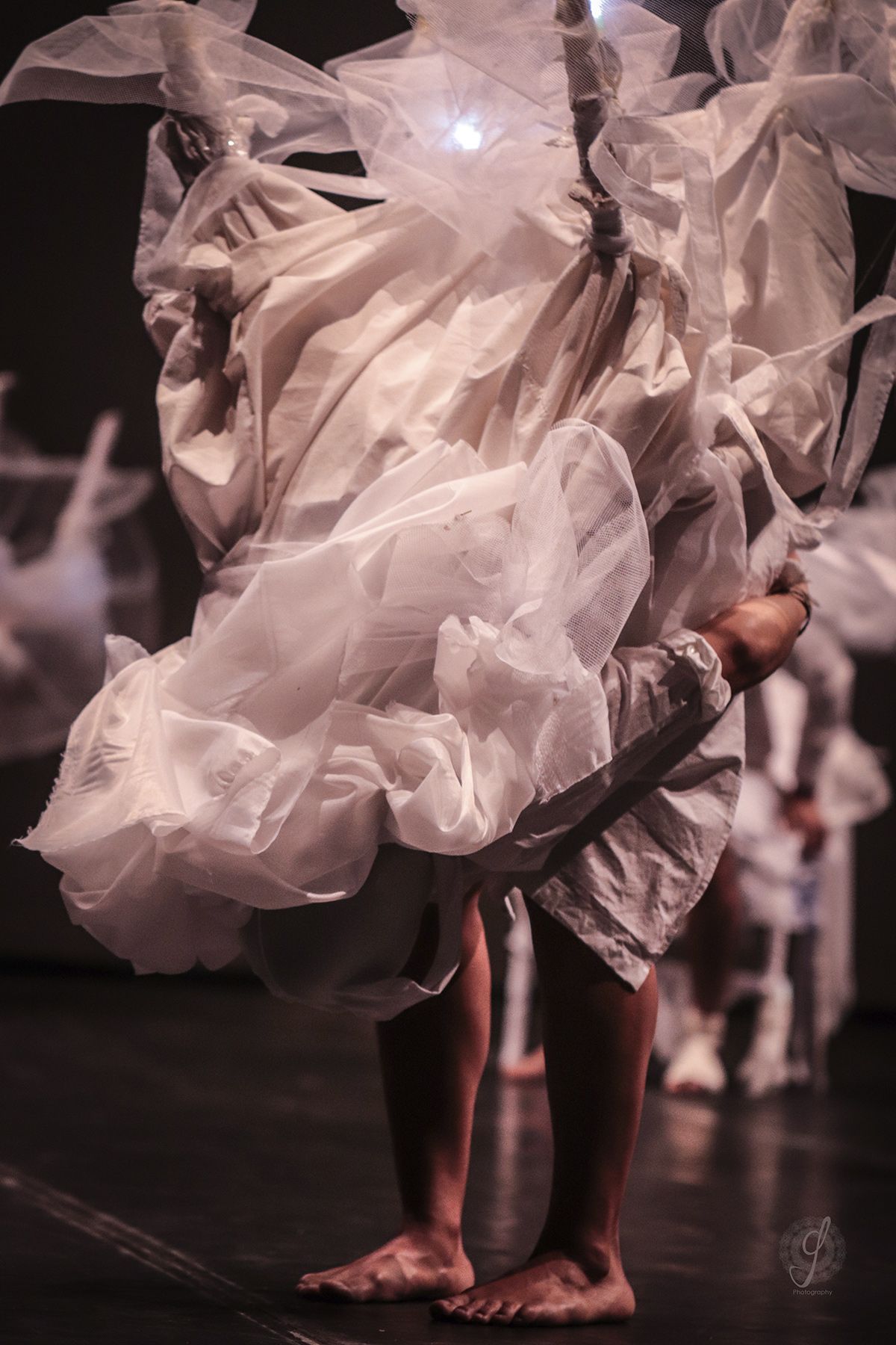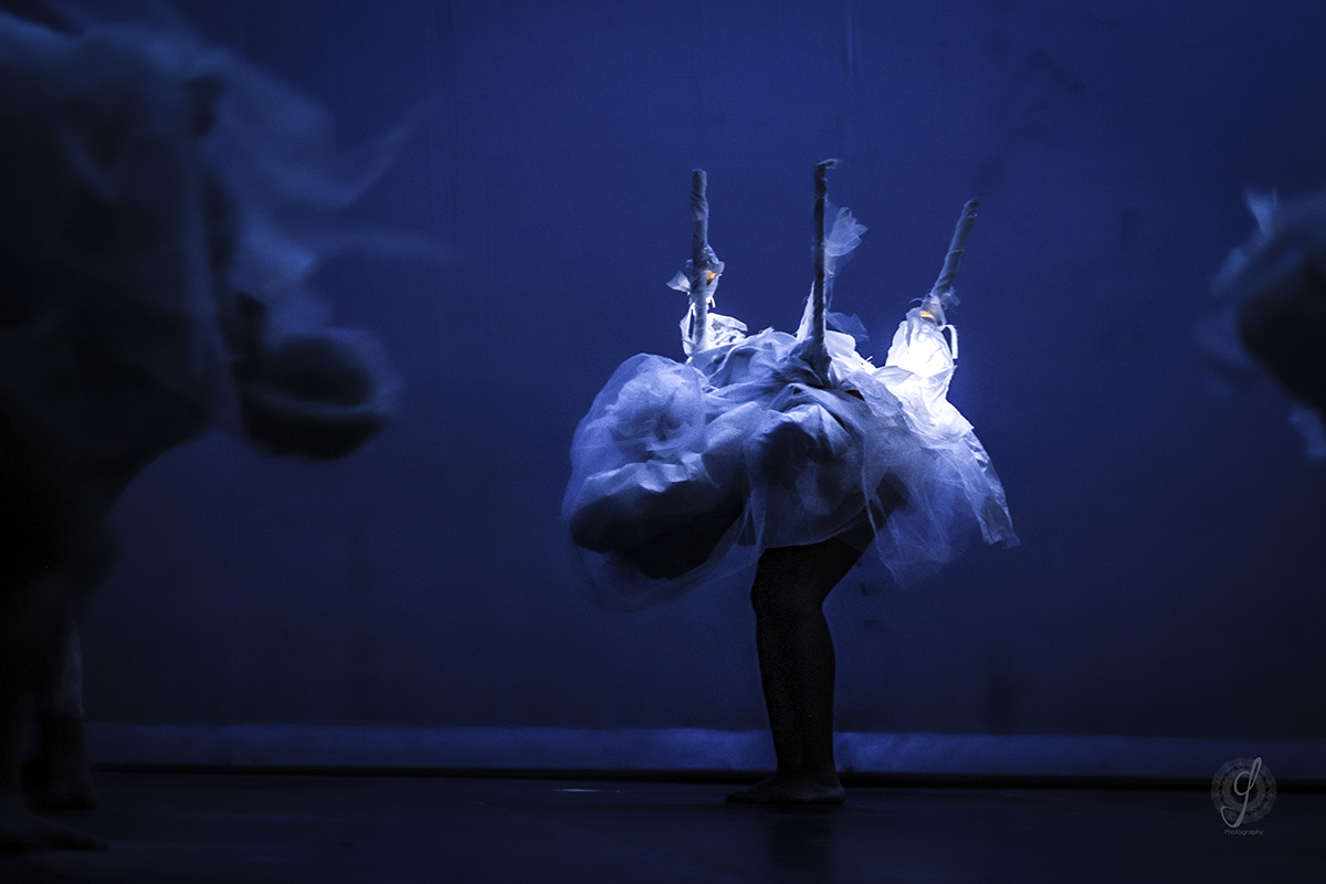 El contexto, particularmente en el programa de la representación artística, nos comunica que se trata de cuerpos de humanas que danzan. Y lo que vemos es una desidentificación del sexo, del cuerpo de mujer y del propio cuerpo humano-humana. Es el movimiento de seres indefinidos que fluyen. Ahora son seres, a veces animados, animadas, y las más de las veces sólo son vida en movimiento y color.